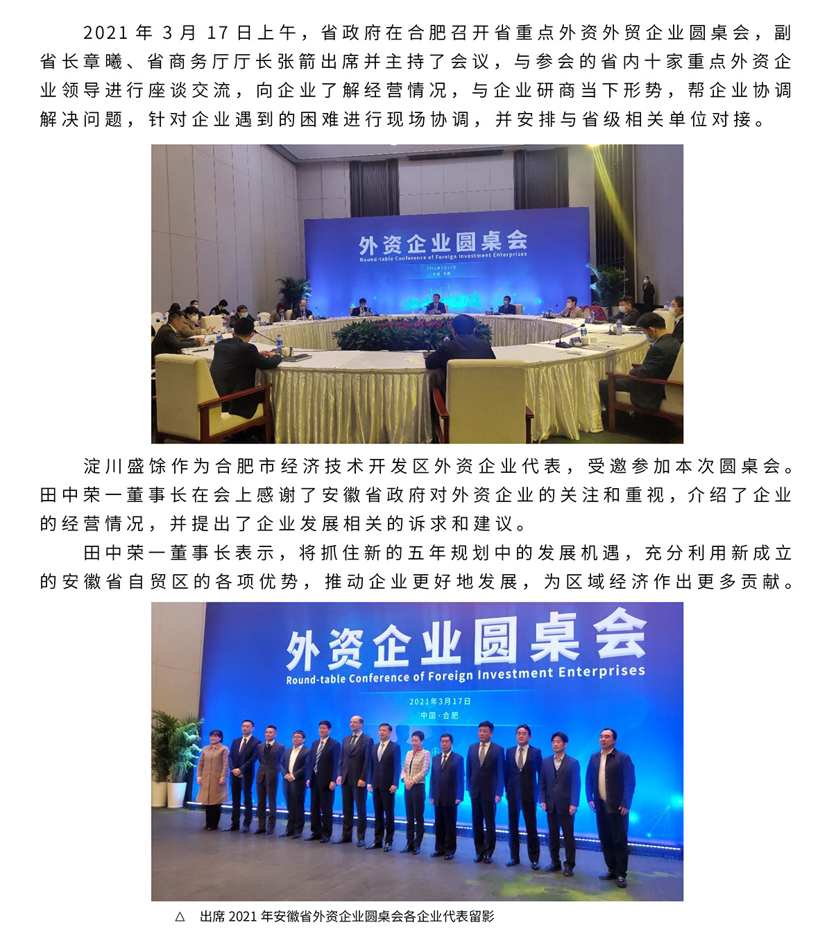 淀川盛馀受邀參加2021安徽省外資企業(yè)圓桌會(huì)