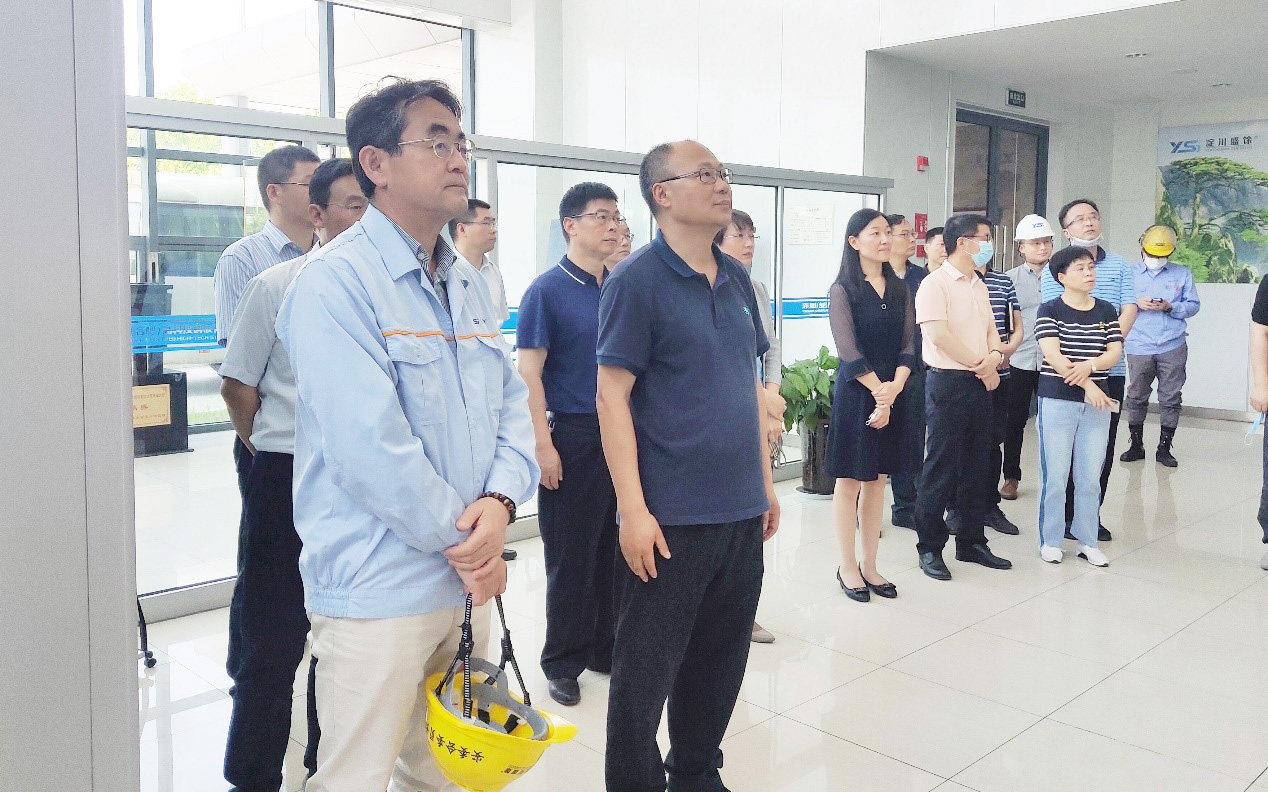 5 月 23 日星期六上午,在合肥市委常委、濱湖科學城管理委員會副主任楊偉的帶領下,濱湖科學城管委會、市濱投公司、包河區(qū)委等一行人員來訪淀川盛馀,了解公司的產(chǎn)品情況及生產(chǎn)經(jīng)營情況;田中總經(jīng)理率領坂井副總和久世副總進行了熱情接待。