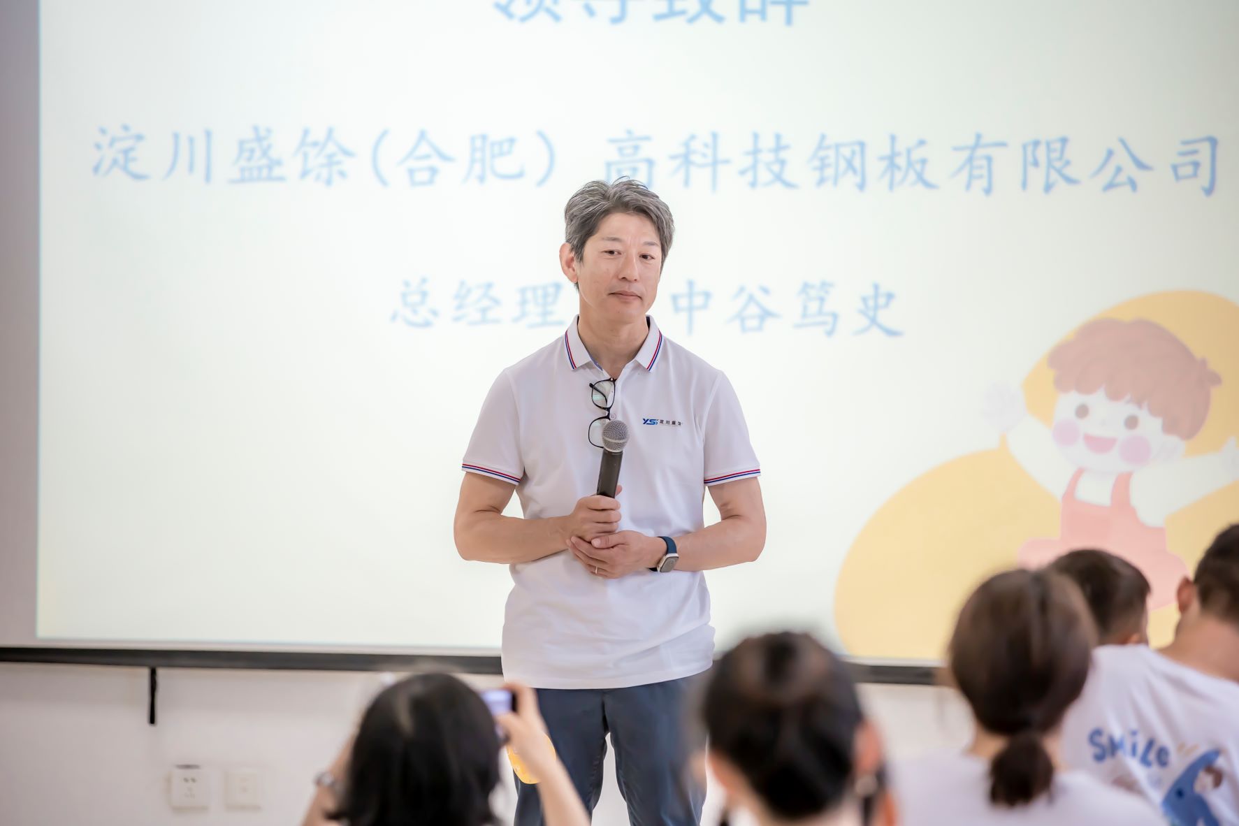 中谷總經(jīng)理一上臺(tái),便用標(biāo)準(zhǔn)的中文和小朋友們打招呼。他說,在自己的職業(yè)生涯中,從未有機(jī)會(huì)帶自己的家人參觀自己的工作環(huán)境,所以非常羨慕在場(chǎng)的每一位家屬。